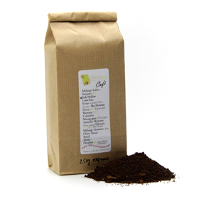 Conditionnements : sachet de 250g, sachet de 500g, sac de 1kg, sac de 5kg, échantillon café 14g (2 doses).